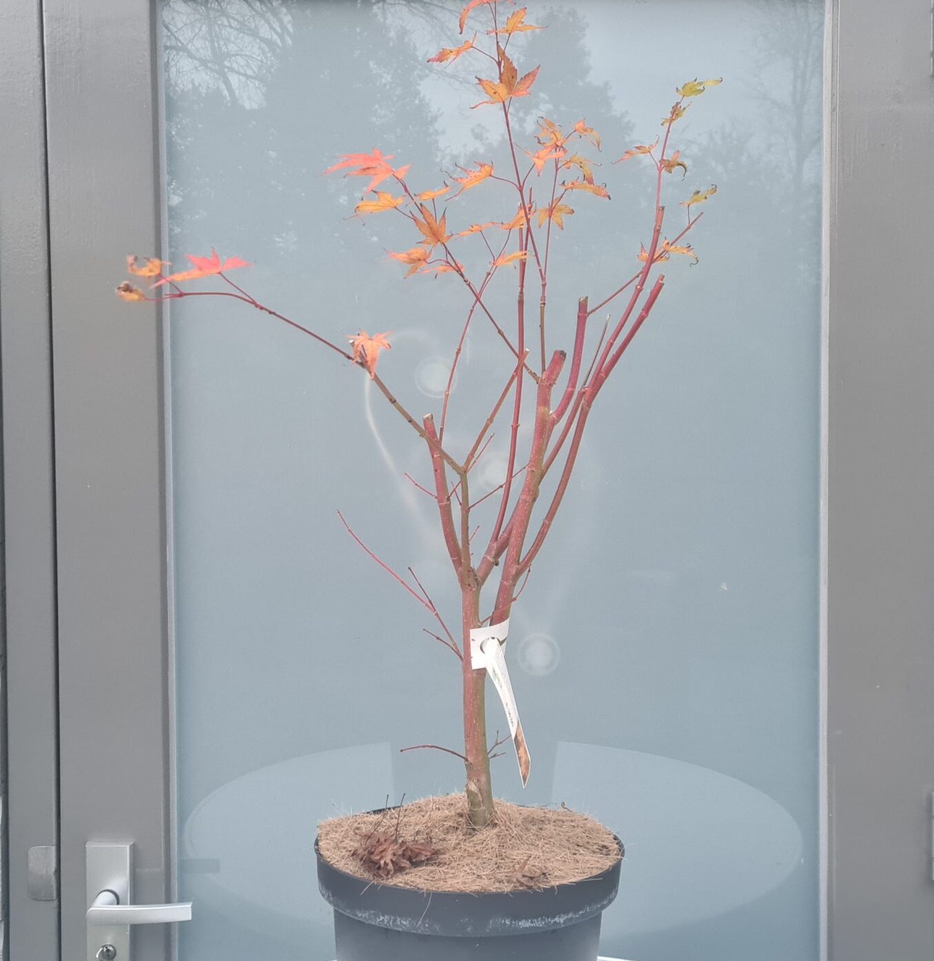 De fraaie bladeren van deze esdoorn zijn eerst bronsroze, daarna groen van kleur en verkleuren in de herfst fraai rood. Daarnaast heeft deze Esdoorn struik een bijzondere tak kleur. Deze zijn vuurrood van kleur. De Acer Palmatum ‘Sangokaku’ is zowel in de zomer als in de winter mooi om te zien.