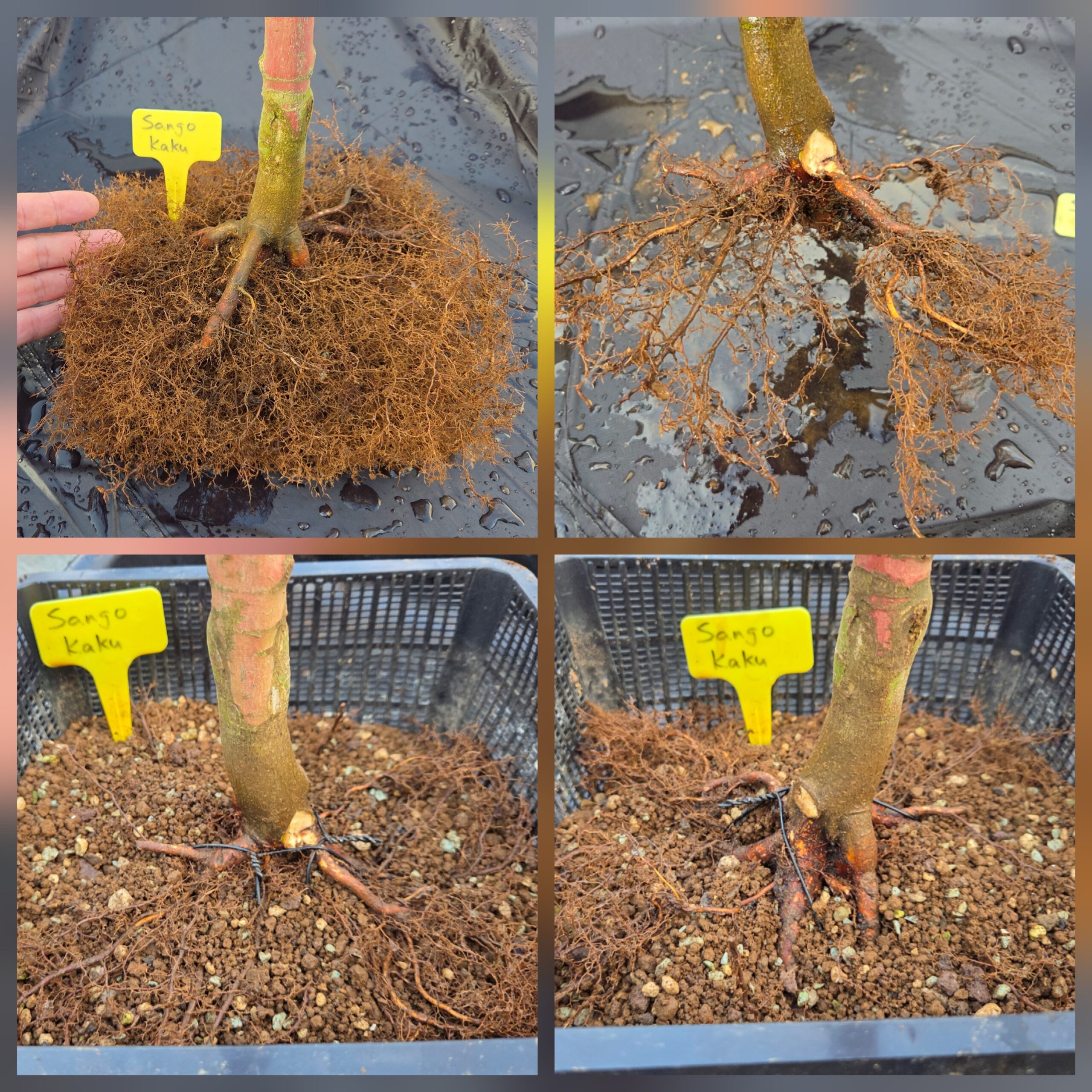 Met hulp van Paula een aantal Japanse esdoorns gekocht bij Esveld om er bonsaiboompjes van te maken. Zo ook deze Sango Kaku met zijn kenmerkende rode bast.