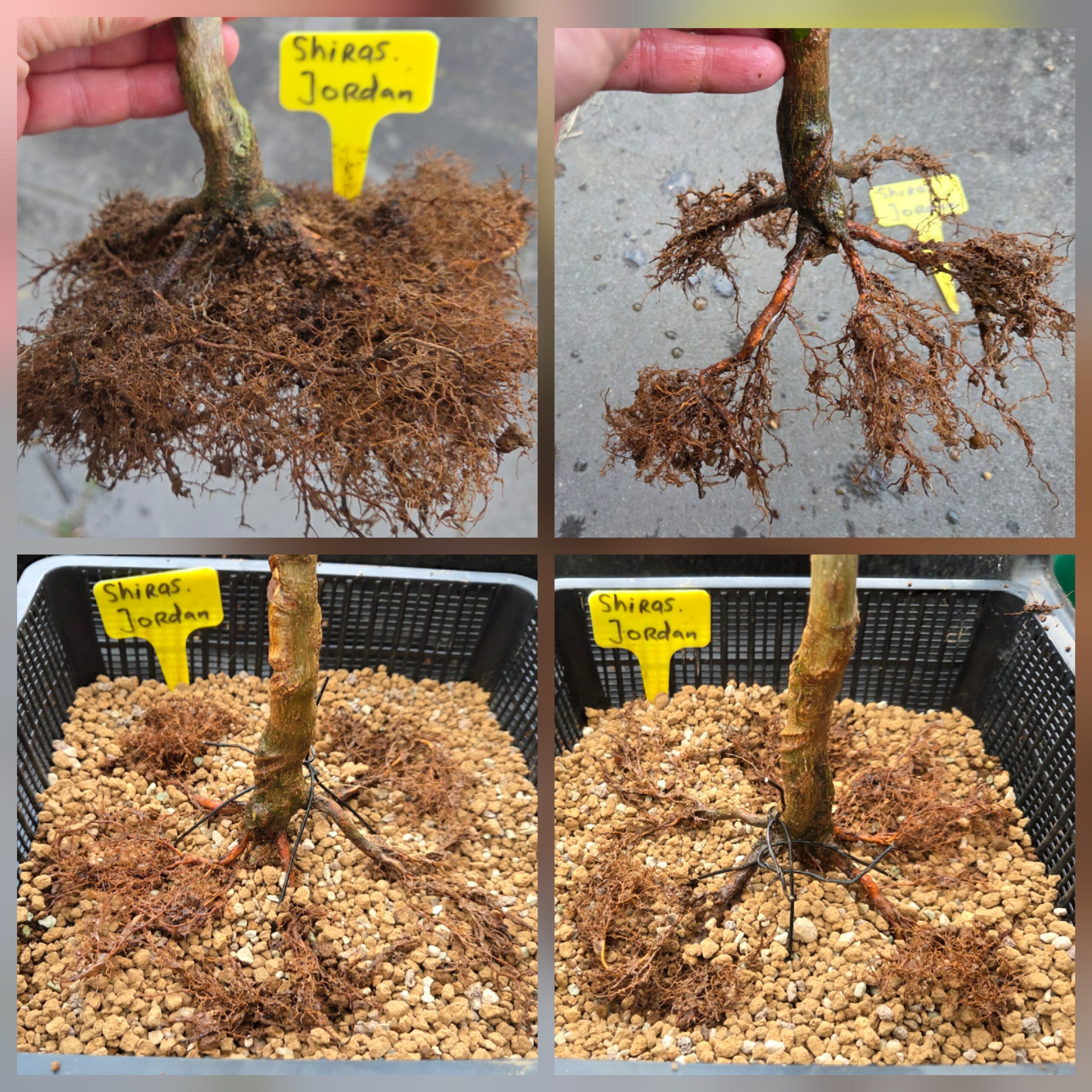Wow, wat een verbetering tov vorig jaar!. Het boompje was goed geworteld en de wortels mooi verdeeld. Ik hoefde geen grote correcties te maken, maar de kleine correcties waren wel nodig. Nu in een grotere vijvermand gezet en hij mag weer een jaartje verder ontwikkelen.