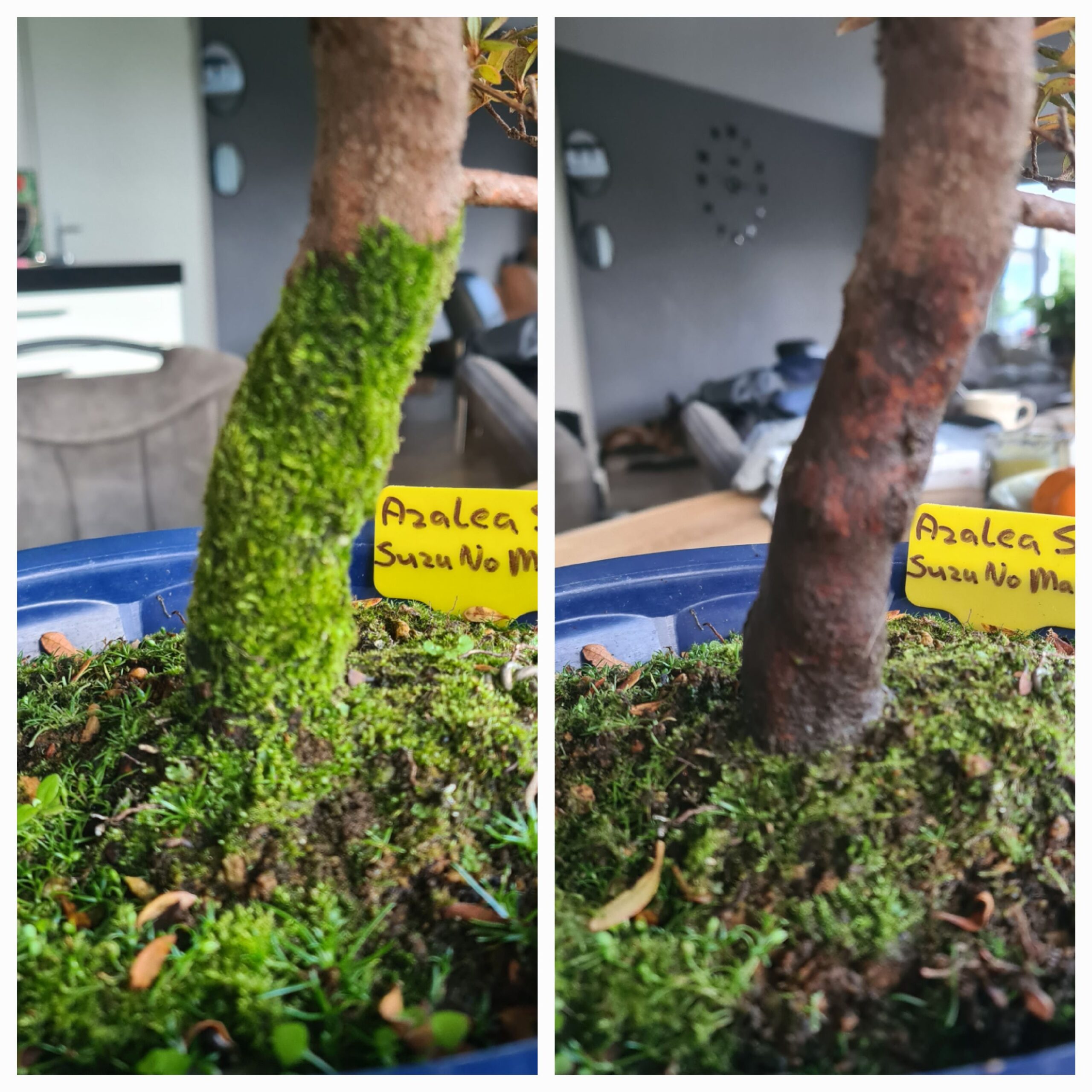 Met een pincet zoveel mogelijk het mos verwijderd en daarna met een tandenborstel schoongeboend.