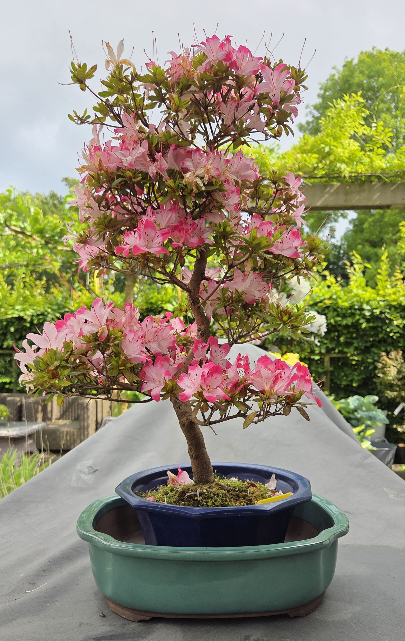 De Satsuki oftewel Azalea is een populaire soort bonsai die behoort tot de Rhododendron familie. Deze plant staat bekend om zijn prachtige roze getinte bloemen.