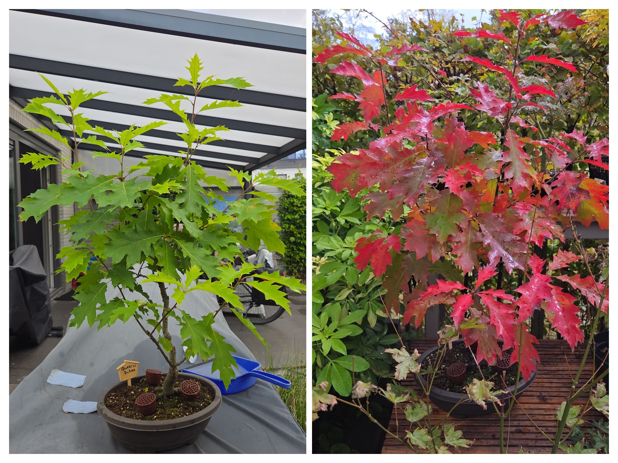 Wat een prachtige kleuren heeft de Rubra. Op deze foto zie je de zomerkleuren in juli en de herfstkleuren in oktober.